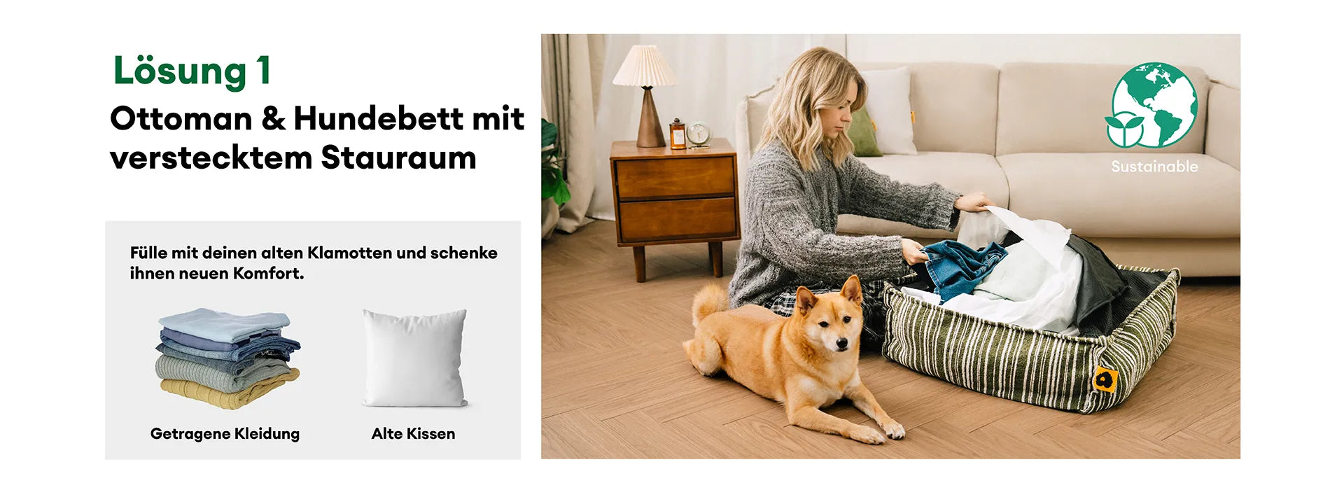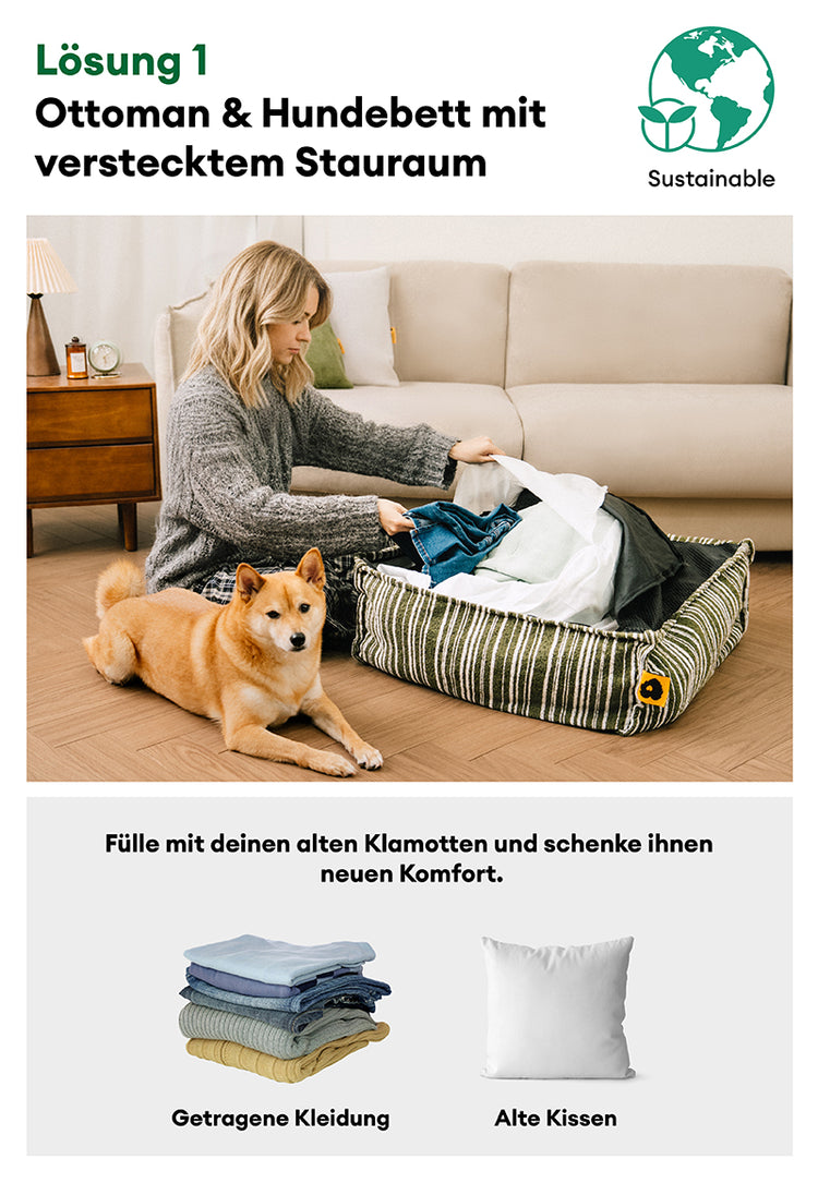 Nachhaltiger Stauraum Pouf Ottoman & Hundebett - Funnyfuzzy SnugNest
