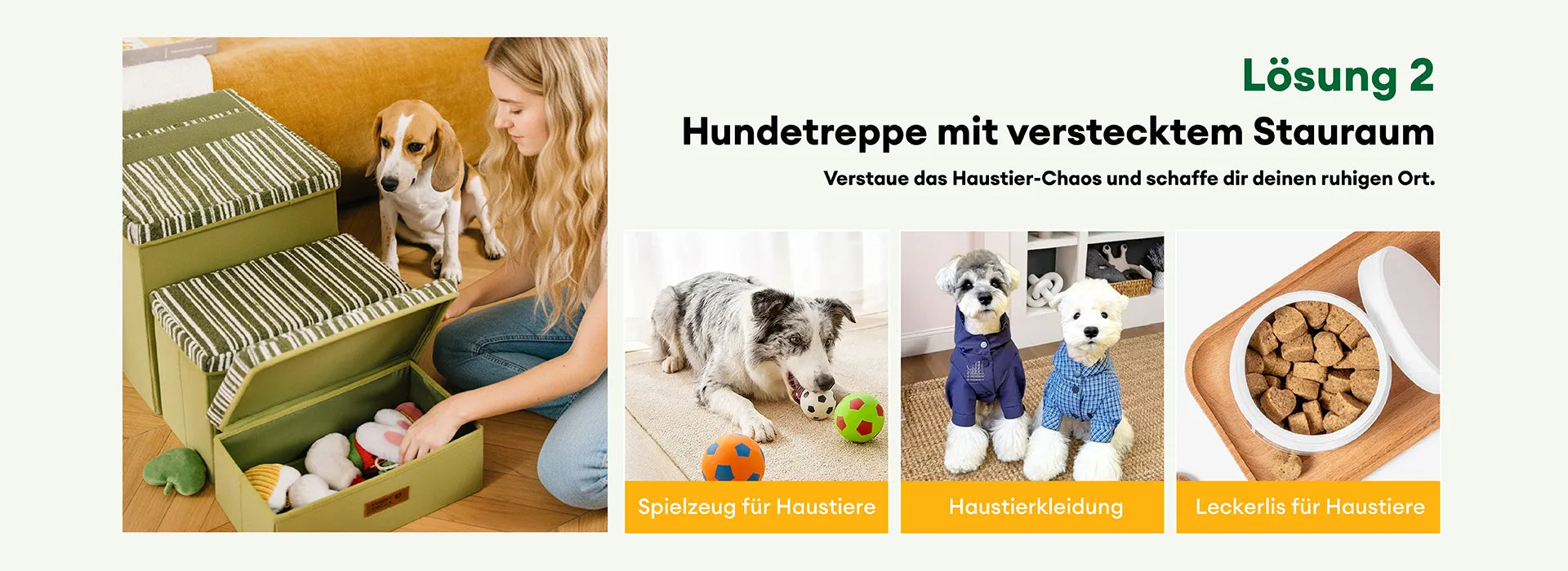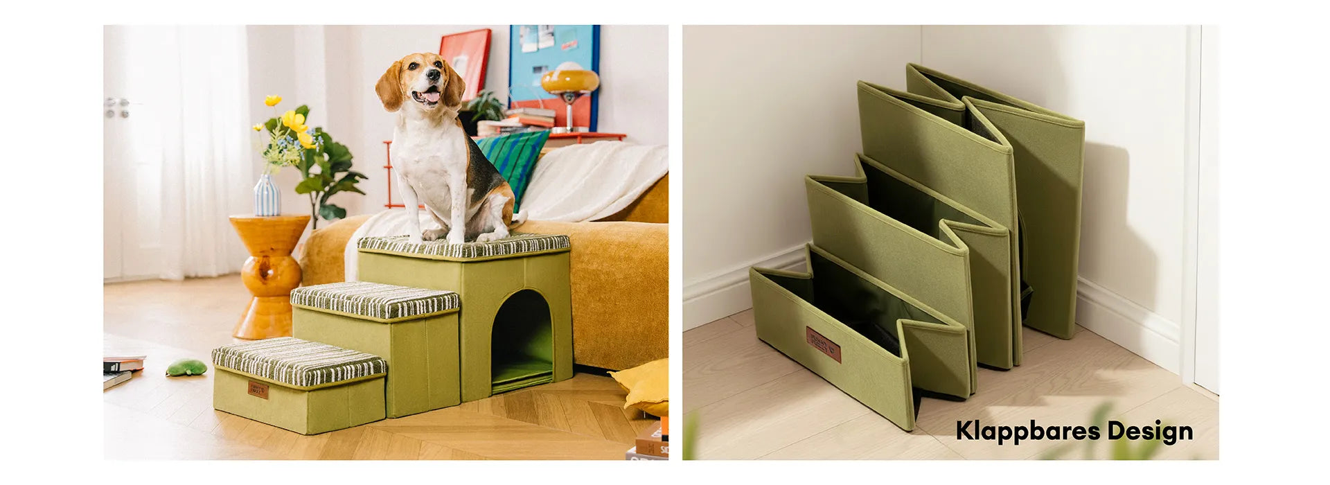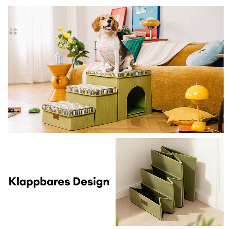 Klappbare Hundetreppe mit Stauraum und Wohnung - Funnyfuzzy SnugNest