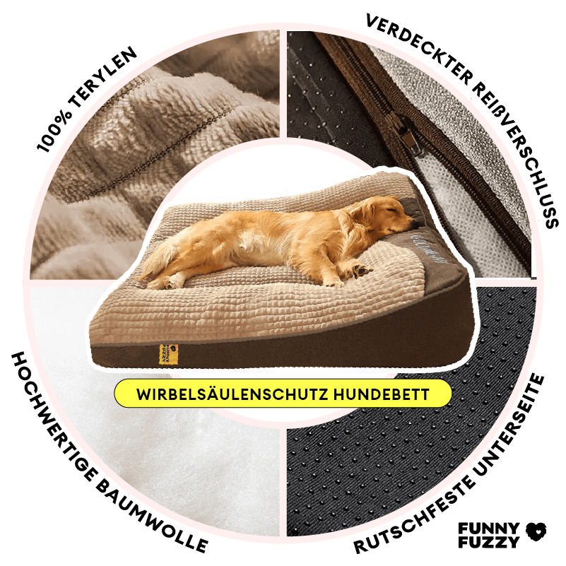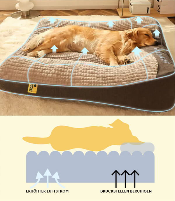 Unsere Betten sind mit ultraweichen, polsternden Materialien gefüllt, die sich an den Körper Ihres Hundes anschmiegen, die alternden Gelenke entlasten und eine gesündere Körperhaltung fördern. Es ist besonders für Rassen geeignet, die zu Arthritis und Hüftdysplasie neigen.