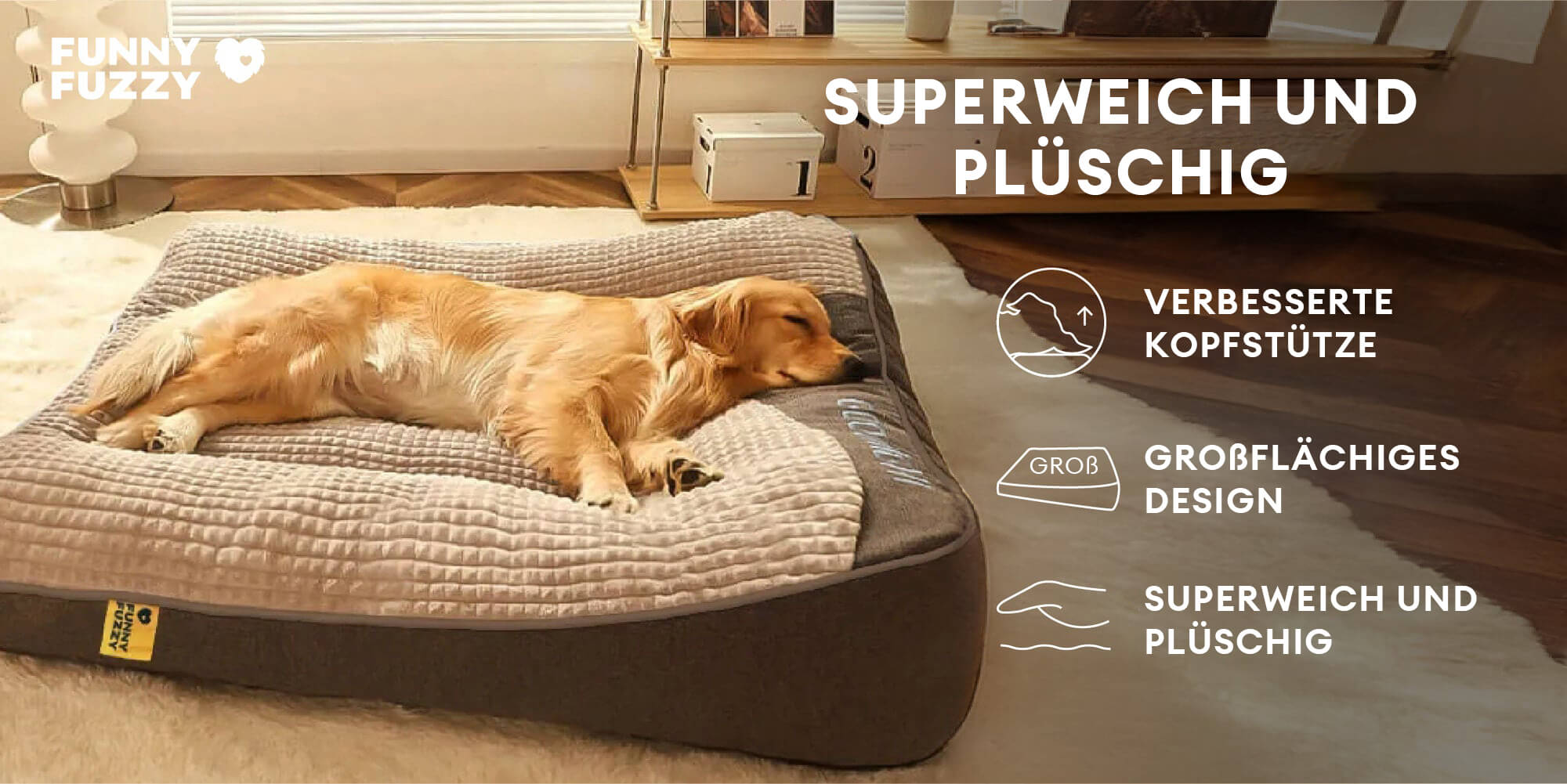 Unser meistverkauftes Hundebett wurde speziell für die Bedürfnisse größerer Hunde entwickelt und bietet unübertroffenen Halt und Komfort. Das geräumige, wirbelsäulenschonende Design wiegt Ihr Hund in wolkengleicher Weichheit und passt sich seinen Konturen perfekt an - für ultimative Entspannung.