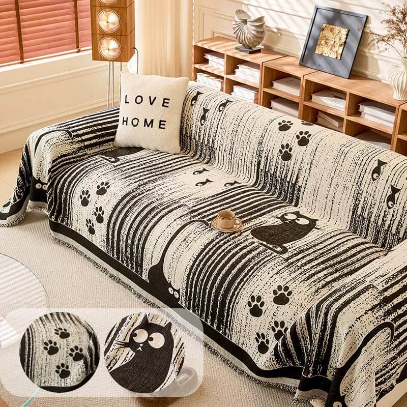 Dieser Sofabezug ist perfekt für Tierliebhaber und Familien. Er zeigt charmante Katzensilhouetten und Pfotenabdrücke und verleiht Ihrem Wohnraum sofort einen verspielten Touch. Genießen Sie eine gemütliche, einladende Atmosphäre und schützen Sie Ihre Möbel mit Stil.