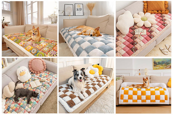 Unsere weichen und cremigen Farben und Muster sorgen dafür, dass dieses Haustier-Accessoire ästhetisch mit jedem Wohnstil harmoniert. Schützen Sie Ihre Möbelböden oder die Oberfläche Ihrer Couch vor Kratzern oder Flecken und sorgen Sie gleichzeitig für die Gemütlichkeit von Ihnen und Ihren Haustieren.