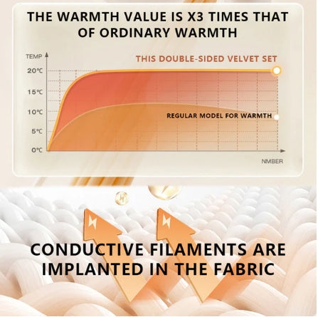 Erleben Sie unvergleichliche Wärme mit unserem Bettwäscheset, das mit leitfähigen Fasern ausgestattet ist, die den Wärmerückhalt maximieren. Entwickelt für diejenigen, die den ultimativen kuscheligen Komfort suchen, hält dieses Set Sie auch in den kältesten Nächten warm.