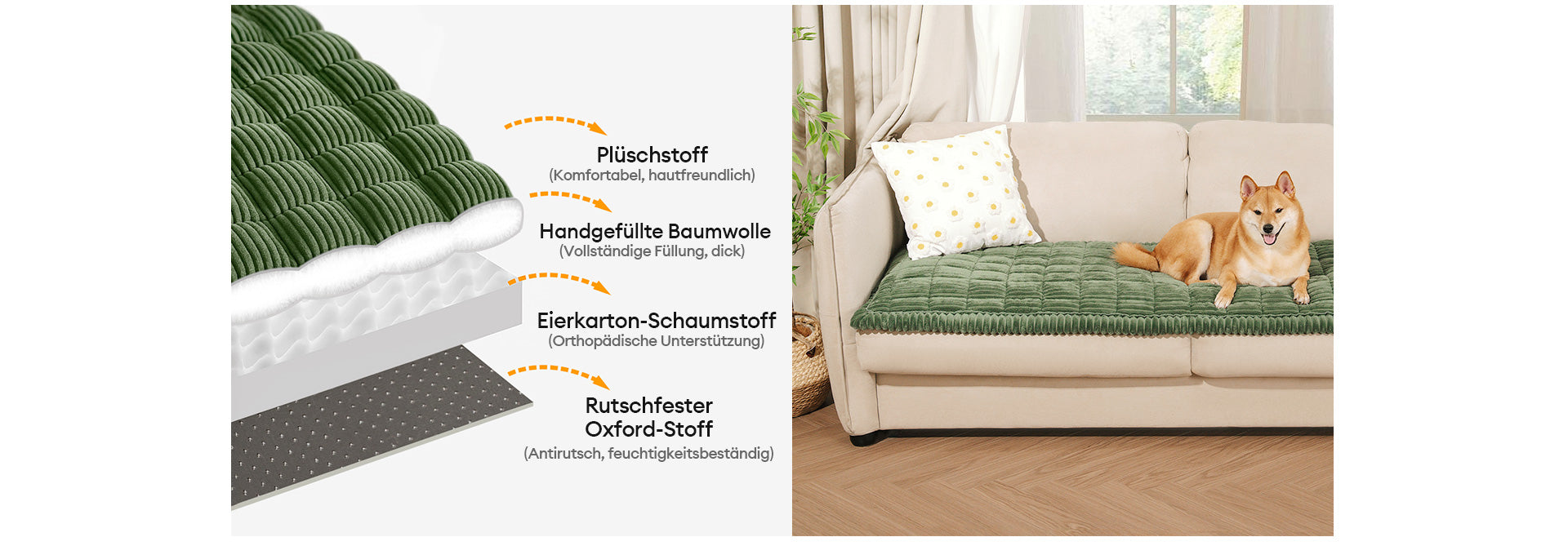 - Sorgen Sie dafür, dass Ihr Sofa wie neu aussieht: Haustiere können Möbeln zusetzen, aber unser strapazierfähiger Sofabezug schützt Sie. Er dient als robuste Barriere gegen Kratzer, Verschüttetes und Tierhaare und trägt dazu bei, das makellose Aussehen Ihres Sofas über Jahre hinweg zu bewahren.