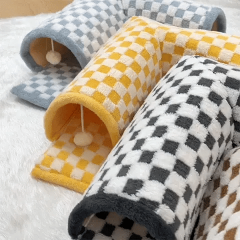 Lustiges 2-in-1 Katzentunnelbett aus Plüsch mit Karomuster