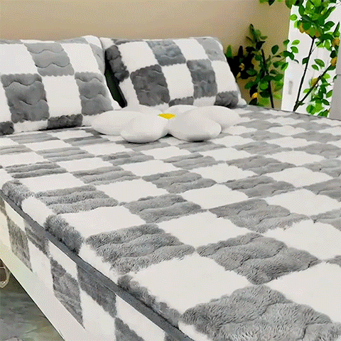 Ultraweicher Schicker karierter Matratzenbezug aus Milchsamt